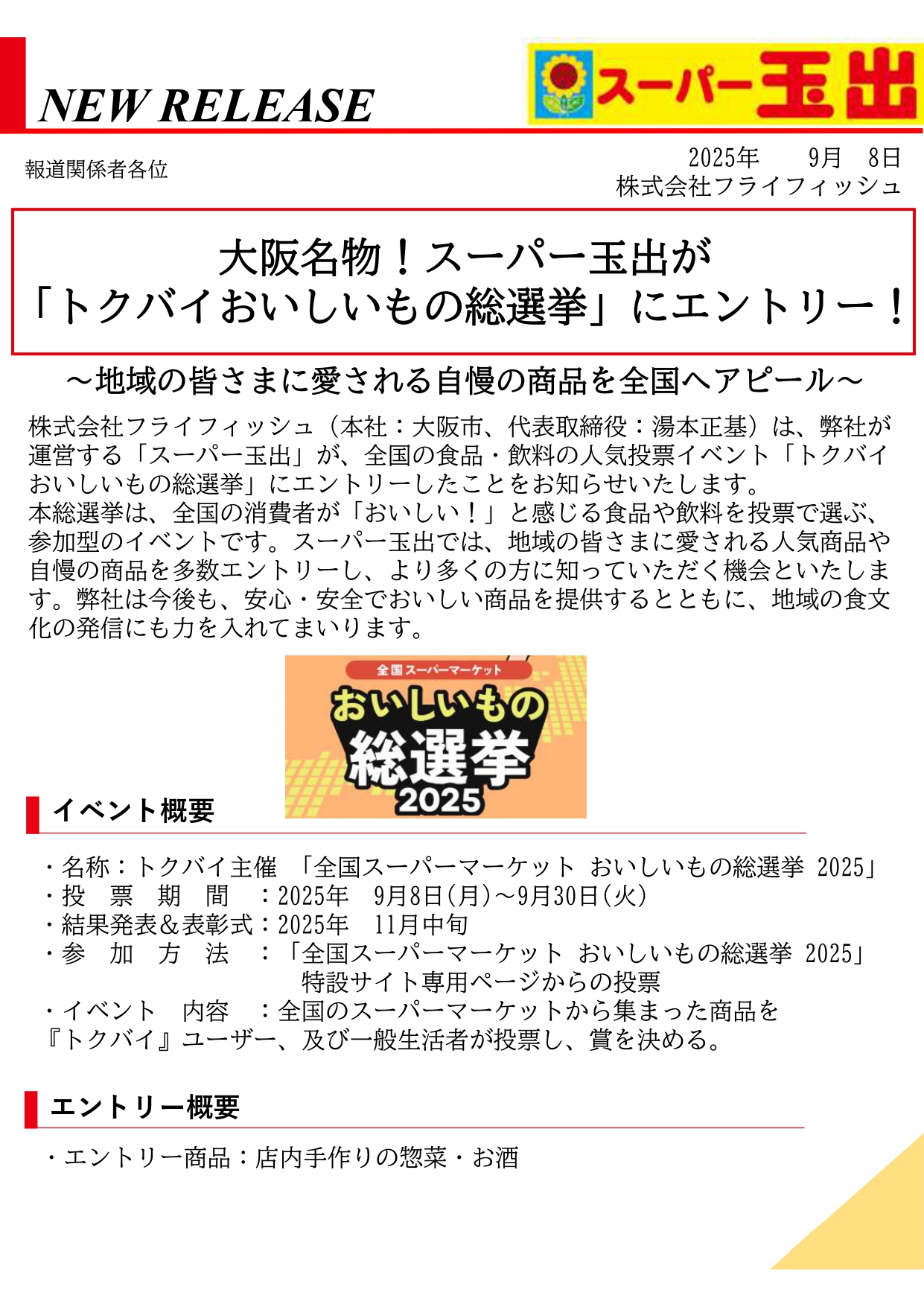スーパー玉出が「トクバイおいしいもの総選挙」にエントリー!